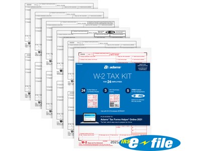 Adams 2021 W 2 Tax Form Kit White Black Red 24 Pack Stax21624 Quill Com
